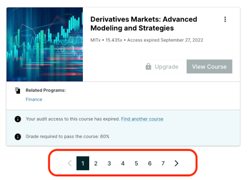 Learner Home has a sleek, simpler, and easier-to-navigate UI, with updates such as pagination that make it easier to manage large lists of courses. The page is built with Paragon, allowing it to be easily styled with brand colors and components.