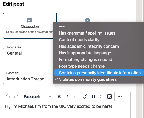 Our next post will take a look at some of the new features for the forum moderation team, as well as improvements to course authoring. Site operators can find information about how to configure the new Discussions feature in the Olive release notes.